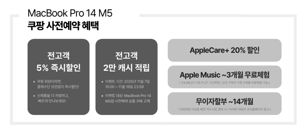 [알아보기] 쿠팡 맥북프로 14 M5칩 사전예약 혜택